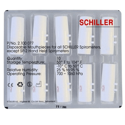 Ensure optimal hygiene with the Schiller Disposable Plastic Mouthpieces for SP-150/SP-250. These mouthpieces are single-use, promoting sanitary practices during patient spirometry tests.